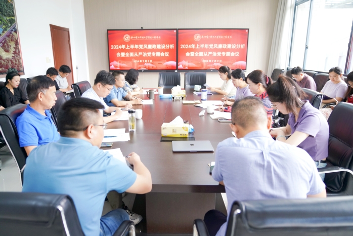7月2日上午,学院党委在格致楼326会议室召开2024年上半年党风廉政建设分析会暨全面从严治党专题会议。学院党政领导班子成员参加专题会议,校纪委委员、机关党委书记袁秀川到会指导,会议由学院党委书记王艳主持。