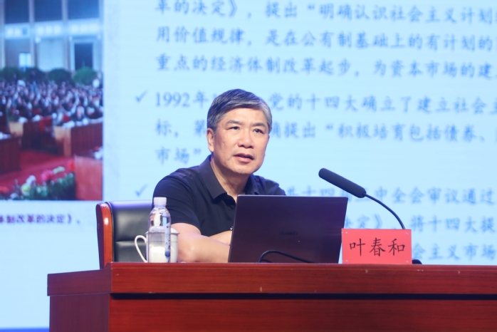 讲座上,叶春和作题为“中国资本市场三十年——从起步到现代化的发展历程”主题讲座。他用深入浅出的语言,围绕中国资本市场发展概况等十几个方面,为我们深刻剖析了中国资本市场的发展历程及启示。叶春和指出,我国资本市场在国家经济发展起中扮演着重要的角色,它经过三十多年的发展,在改革开放中成长,从无到有,从小到大,已经逐步成为与我国经济体量相匹配、具有全球影响力和竞争力的重要市场。叶春和鼓励同学们,诸位作为未来经济社会的参与者,应积极学习相关知识,主动了解社会变化和未来趋势,努力把握发展机遇,为中华民族伟大复兴贡献自己的聪明才智。