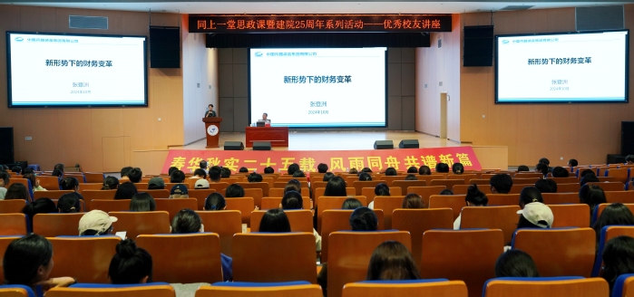 10月16日,我院在图书馆报告厅举行“同上一堂思政课——新形势下的财政变革”优秀校友主题讲座。本次讲座由中国总会计师协会副会长、中国南水北调集团公司外部董事、中国财政科学研究所兼职教授、杭电优秀校友张登洲博士主讲,学院党委书记王艳主持。管理学院院长辛金国、特聘教授王泽霞、管理学院执行院长陈月艳以及300余名师生参与本场讲座。