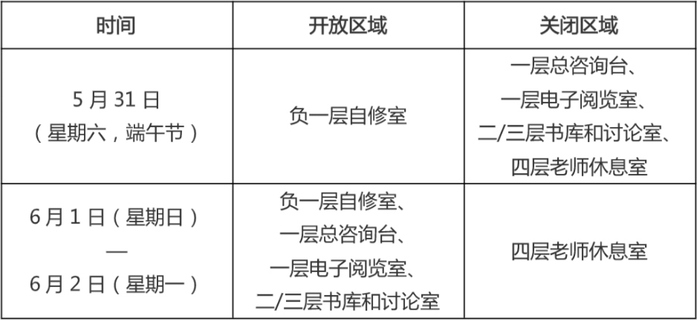 2.5月31日(星期六,端午节),图书馆一层大门暂不开放,请各位读者由负一层南门进出图书馆。
