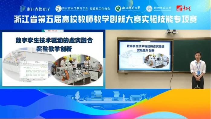 近日,由浙江省教育厅指导、浙江省高等教育学会主办的浙江省第五届高校教师教学创新大赛实验技能专项赛在杭州师范大学圆满落幕。全省共有154个作品报名参赛,经过网络评审,77个优秀作品入围省级现场赛。经过激烈角逐,我院钱卓涛教师团队凭借《数字孪生技术驱动的虚实融合实验教学创新》项目,荣获实验教学比赛二等奖,实现了我院在该赛事中的新突破。