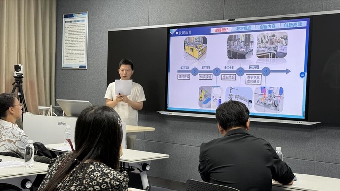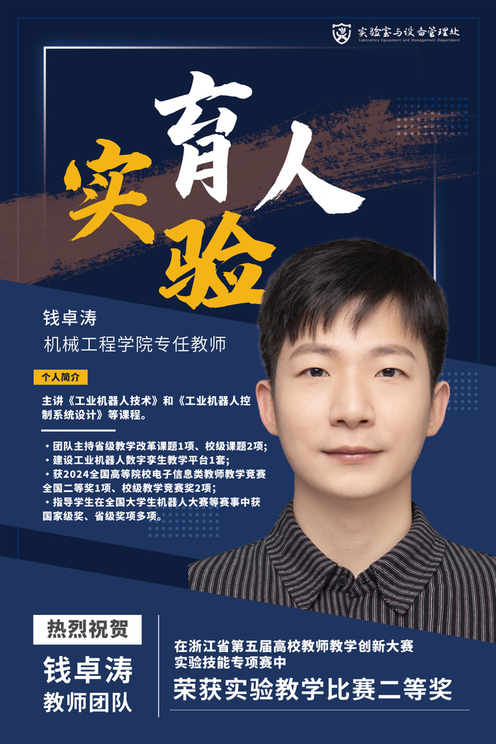 本次大赛分为实验教学、自制实验教学仪器设备两个赛道,重点考察教师的实验教学创新能力、实践操作技能等。钱卓涛教师团队的作品将数字孪生技术与实验教学深度融合,构建了虚实结合的智能化实验教学平台,有效解决了传统实验教学中设备不足、时空受限等问题,展现了较高的教学创新水平和实践应用价值。