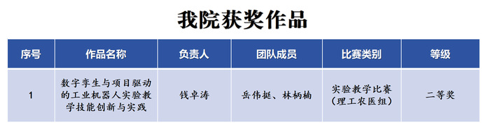 此次获奖不仅是我院在省级实验教学创新竞赛中的又一次突破,更对推动实验教学改革、促进教师专业成长具有重要意义。未来,学院将持续深化“以赛促教、以赛促改”教学理念,鼓励教师探索实验教学新方法、新技术,进一步提升实验教学质量,为培养高素质创新型人才提供有力支撑。