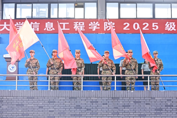授旗仪式在全体师生的共同见证下顺利举行,2025级本科学生军训征程正式开启。
